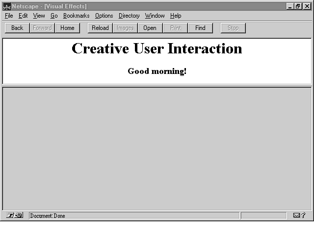 In the preceding example, you used the time of day to determine which colors and messages to use in generating a dynamic header frame. You can take this example even further; for instance, you might define a different message for every hour of the day, or even for every minute of the hour. You can use this technique to give your pages many different looks.