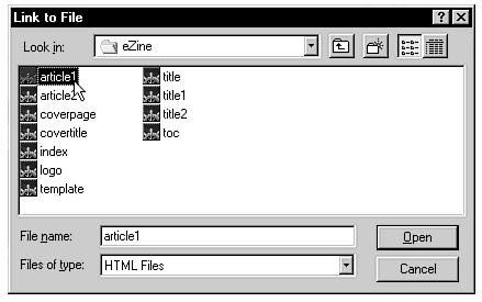 Adding a couple of horizontal lines to separate things and dropping the text size down to <H6> produces a tight, clean look. As they are now, however, the links will load the article documents into the table of contents frame. Edit the file from NotePad to add the TARGET attribute: