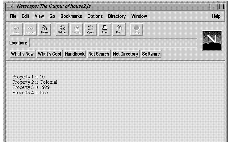 document.write("<BR>Property " + iter + " is " + somehouse[iter]);